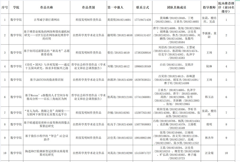 2021年挑战杯去年发布赛事通知后,永利官网认真组织仔细筹备,共计十八支团队报名参与了此次挑战杯院赛评选,其中科技发明类作品、自然科学类学术论文作品、哲学社会科学类作品(学术论文和社会调查报告)各六份,参与学生包括2018-2020级本科生,以2019级学生为主。