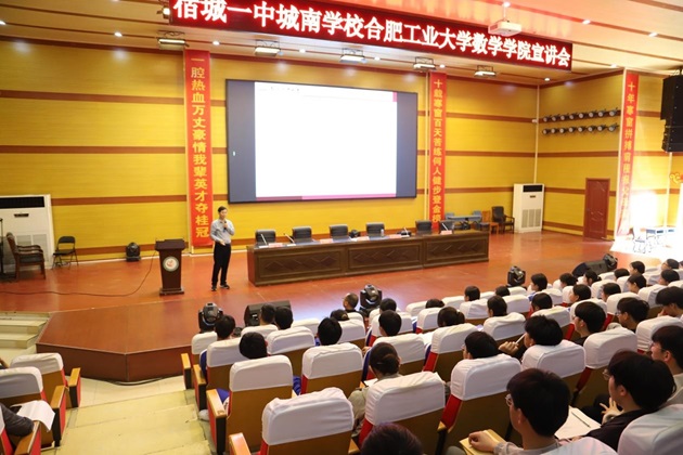 在灵璧一中,朱士信教授为近1000名学生做了《谈中学数学学习方法和大学数学的应用》的科普报告,并介绍了304永利登录入口的基本情况。朱士信教授就如何迎接高考、如何考试、如何填报志愿等问题给高三学子作了专门指导。他结合自己和同学的真实成才故事,激励高三学子要保持自信,脚踏实地,勤奋学习,为自己的人生梦想不懈追求。报告会朴实真挚,催人奋进,台下的学子们不时爆发出雷鸣般掌声和由衷的称赞声。
