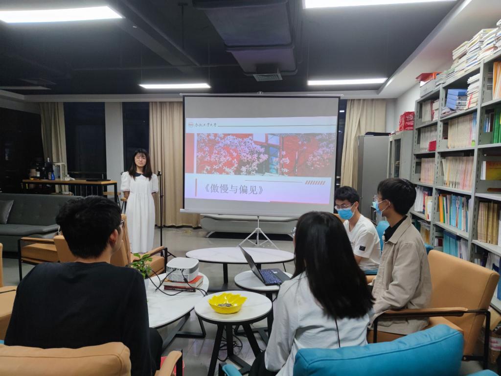 4月16日晚,“书籍分享”微沙龙活动邀请到学院2021级同学吴彤彤作为分享人,她结合自己阅读《傲慢与偏见》的体会朗读书籍中的经典片段、分享心得感悟,与会同学们也或是结合现实表达观点、或是结合自身做出反思,依次对书籍的主要内容做了交流。