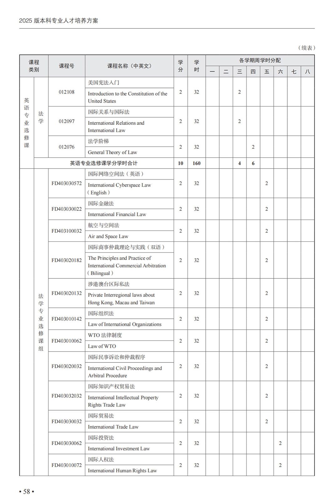 英语(中国政法大学联合培养涉外法治人才)专业本科培养方案(2025)