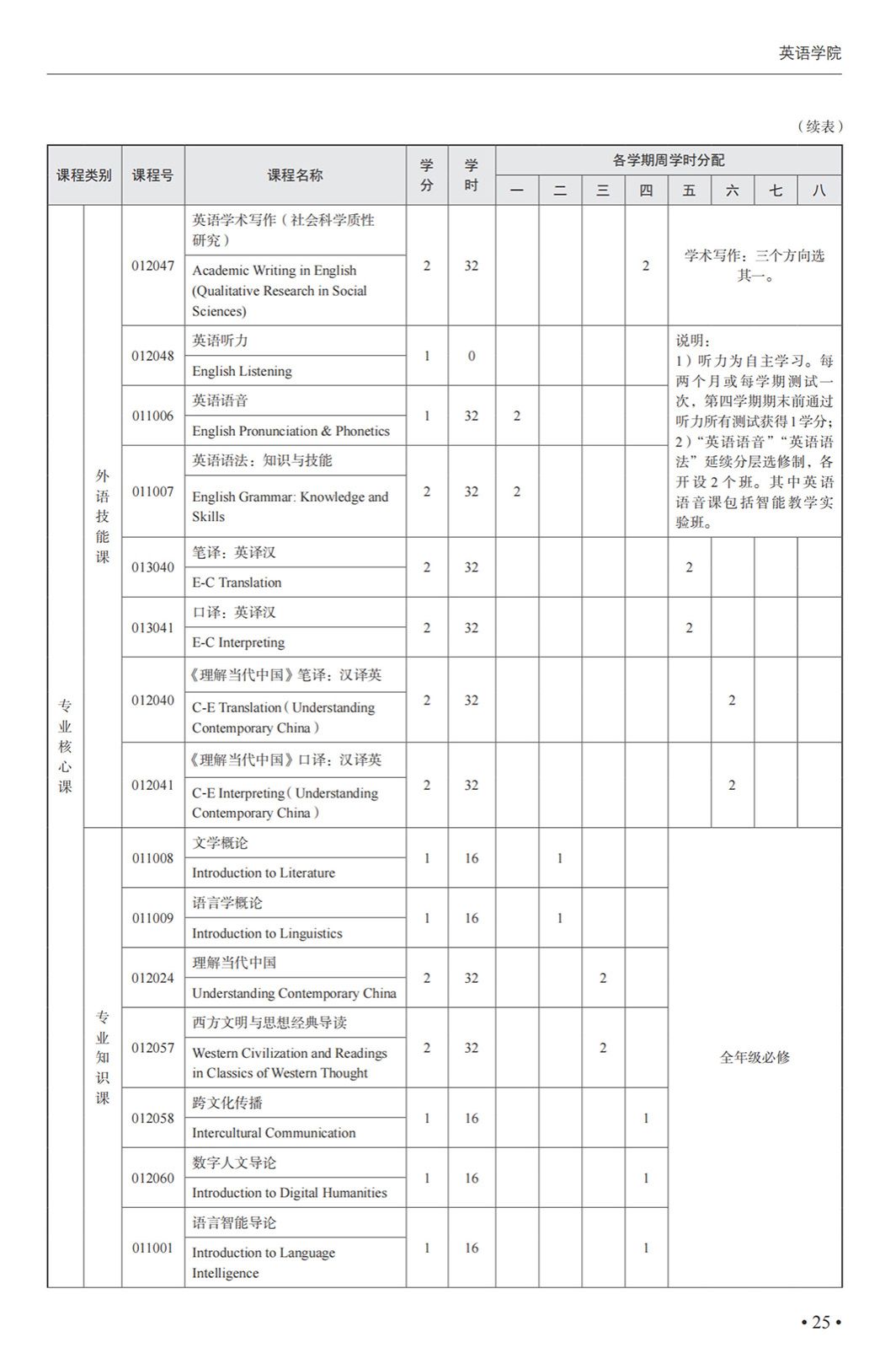 翻译(外事外交高级翻译)专业本科培养方案(2025)