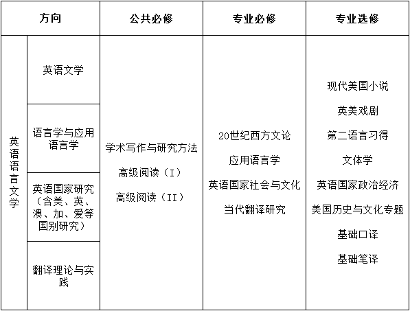 ——课程涵盖taptap点点体育英语语言文学专业下英美文学、语言学与应用语言学、英语国家研究、翻译理论与实践四个方向的主干课程。课程包括公共必修课3门、专业必修课4门、专业选修课8门。