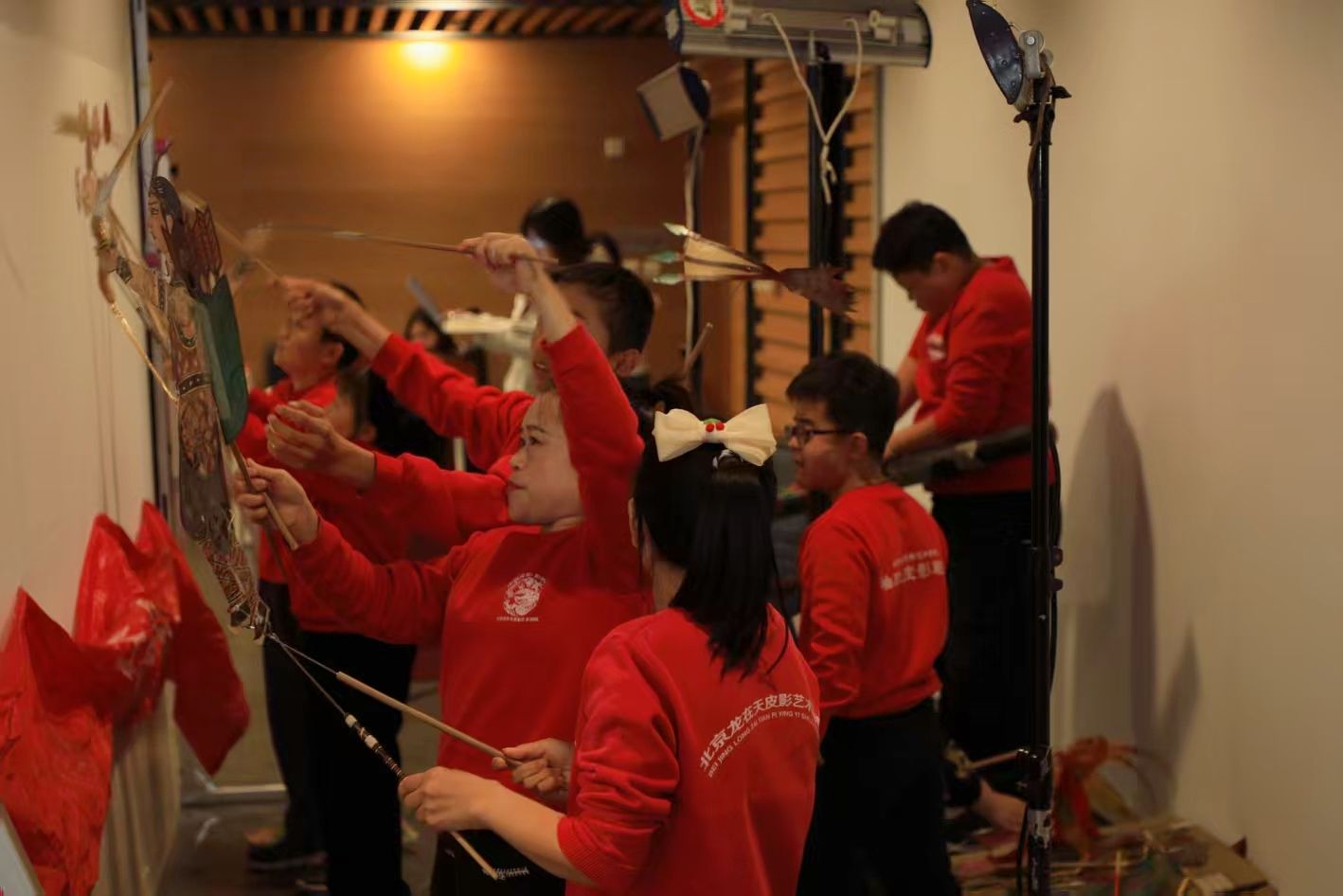 在表演环节,北京龙在天皮影艺术剧院带来了与北外taptap点点体育合作创作的两部经典剧目《大闹天宫》与《嫦娥奔月》的英文配音版演出。幕布之上,悟空与嫦娥的形象在光影间跃动。纯正的英文旁白与唱腔与影人精准的动作、传统的配乐相得益彰,这种跨越语言障碍的生动演绎,让中美观众无需字幕便能沉浸于剧情之中。现场掌声不断,大家纷纷举起手机记录精彩瞬间,沉浸于皮影艺术的视觉盛宴中。