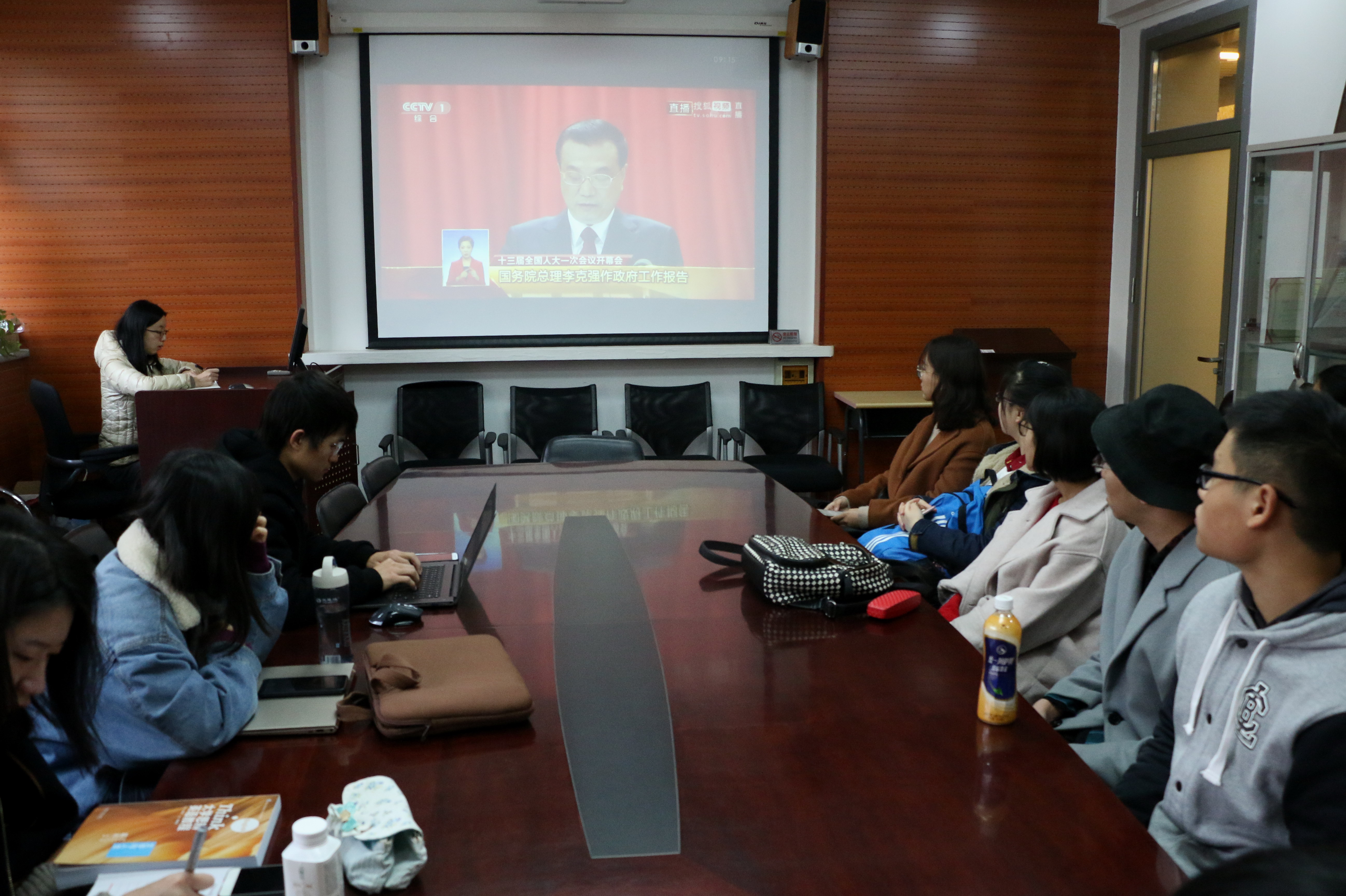 taptap点点体育组织师生收看李克强总理作政府工作报告