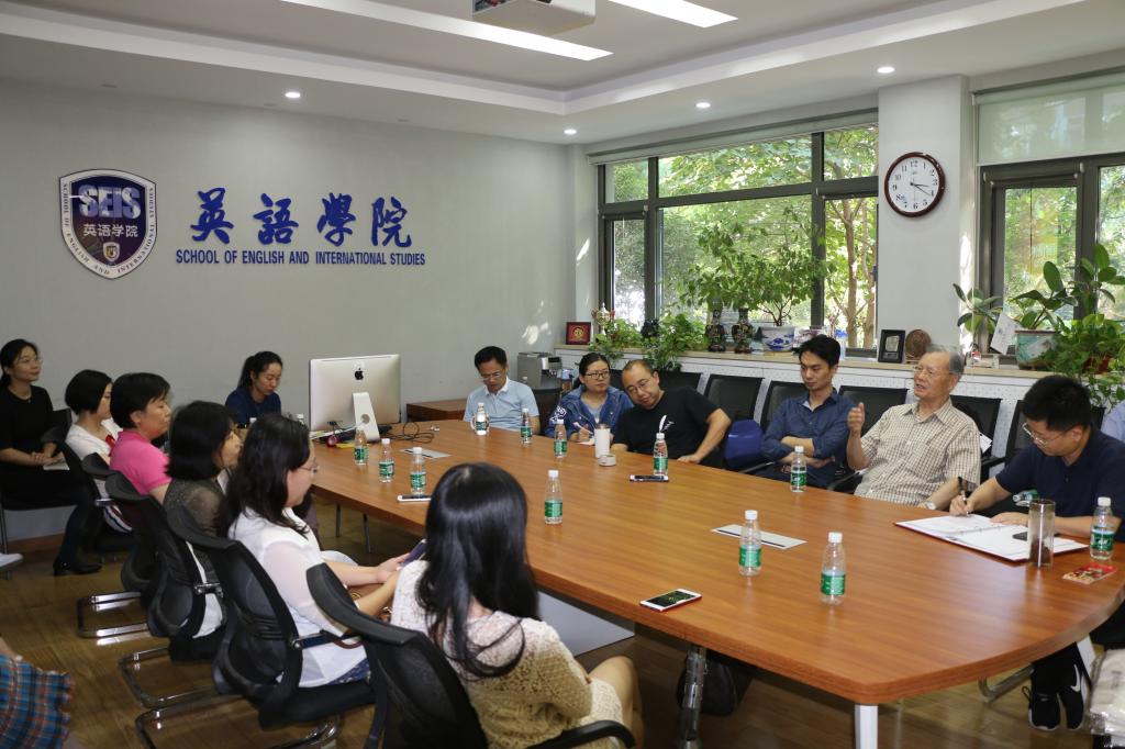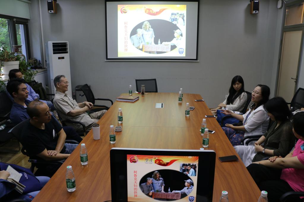 接着,与会的教职工党员展开了讨论,并更加详细询问了张中载老师关于伊莎白老师的情况。有老师问伊莎白老师当时在学校教授什么课程。张中载说她主要教口语和精读。当初条件差,如果不是冬天,学生们就会拿一个小马扎,在校园里找个地方围成一圈上课。而当时学习还有一个规定是进到英语系楼之后就不能讲中文,只能讲英文。伊莎白老师起初教授的是实践课,到60年代时才开始给高年级开设理论课程。应年轻老师的询问,张中载老师还讲了当时伊莎白·柯鲁克夫妇工作之余邀请同事到家吃饭等趣事。对于其他老师的的提问,张中载老师娓娓道来,为大家更加完整地还原了一个可爱可敬的国际友人。张中载老师表示,伊莎白·柯鲁克夫妇在中国生活是更加有归属感的。当年外专局在郊区为伊莎白·柯鲁克夫妇提供了很好的住房,但他们依然选择住在北外校园并不宽敞的一套房子里。因为,这里对他们来说是一个有感情的地方,他们的亲朋好友、学生、同事都在这里,他们是完全把中国、把北外当成了自己的家。