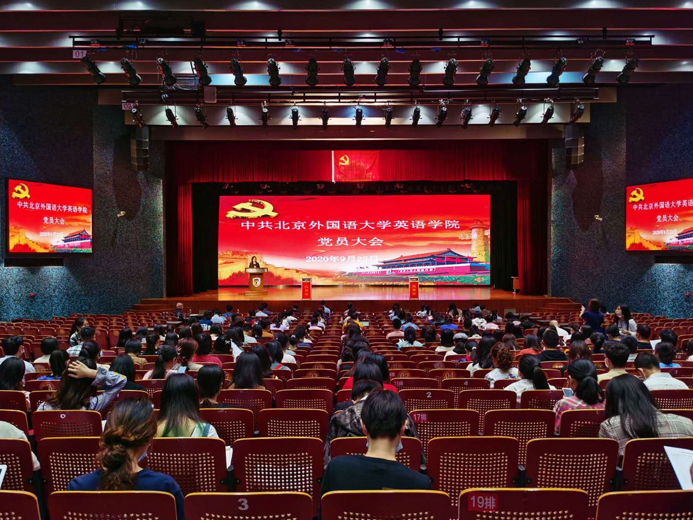 杨丹校长在讲话中向全体与会党员强调了今年下半年成功召开第十次党代会和制订好“十四五”规划等重点工作的重要性。他在讲话中指出,北外在人才培养中要继续提升学生听、说、读、写、译等五项基本语言技能,积极深化在语言学、文学、翻译学、比较文明与跨文化交际、区域与国别研究等五个领域的人才培养和学术研究;要沿着“北京的北外、中国的北外、世界的北外、云端的北外、智能的北外”这五个发展方向继续前行;要深化“人才强校、学术兴校、全球立校、特色发展、深度开放”等五个发展战略。“十四五”期间,北外将以不同方式和层次开设所有建交国语种,要拓展中外交流的学术桥梁,打造多语种教材方阵、多语种辞书方阵、多语种期刊方阵,并在此基础上不断拓展发展领域、优化学科生态、涵养学术文化、提升师资队伍、实现资源突破,改善民生保障。
