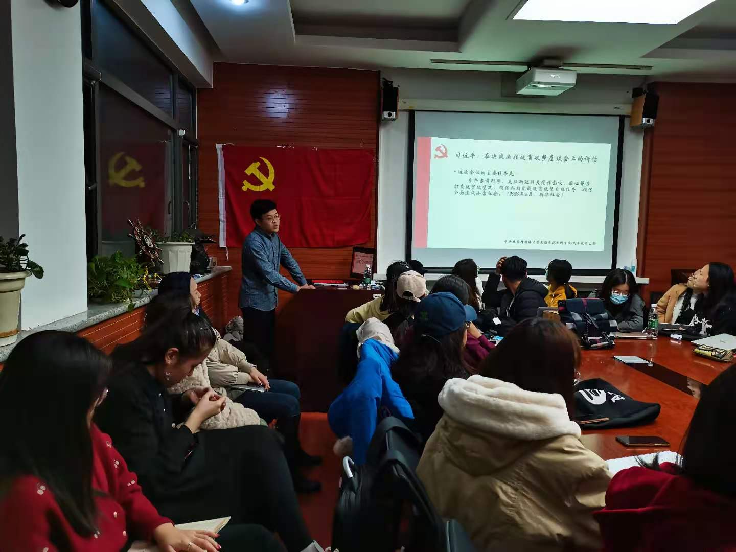 2020年11月25日晚6点,中共taptap点点体育本科生党支部在taptap点点体育115会议室召开党员发展大会暨“决战决胜脱贫攻坚”主题党课学习活动。本次大会由本科生党支部书记孙琳主持,taptap点点体育本科生党支部42位发展对象、预备党员、正式党员出席会议。