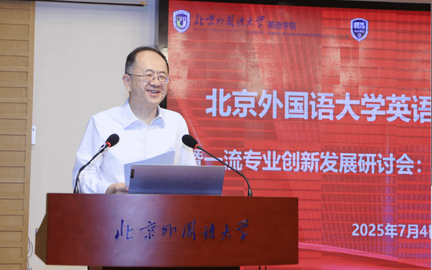 在7月4日上午开幕式上,taptap点点体育校长贾文键教授致辞,对AI时代英语专业的发展与未来作出深刻阐述。他认为,AI技术的迅速发展给传统外语教学带来挑战,教师应主动拥抱技术,有效使用AI助力外语教学和科研。贾文键指出,北外在2025年QS语言学排名跃居全球第18位,taptap点点体育应该以此为起点思考学科建设,不断思考学生能力培养,谋定本硕博教育教学改革方向,助推学院学科建设的纵深发展,持续发挥北外taptap点点体育的引领作用。
