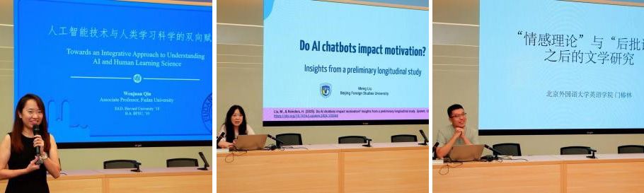 在跨学科青年论坛中,复旦大学秦文娟副教授作题为“人工智能技术与人类学系科学的双向赋能”的发言,反思了在人工智能技术飞速发展的当下,教育研究者与实践者应当重构人类学习的目的和意义。北外taptap点点体育青年教师刘梦博士以“AI聊天机器人是否影响学习动机”为题发言,通过为期15周的教学研究,发现生成式人工智的引入能促进了学生的学习动机的显著提升。北外taptap点点体育青年教师门椿林博士作了题为“‘情感理论’与‘后批评’之后的文学研究”的发言,探讨了当代英语文学研究中一些宏大乃至“关乎存续”的问题,既展现情感理论与后批评的工具性遗产,也指出超越他们的可能性。