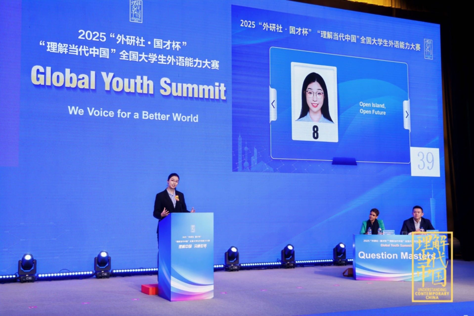 taptap点点体育2023级(国别与区域研究)本科生陈惜缘,在周杜娟老师的指导下,历经前三个阶段的激烈角逐,从60名金奖选手中脱颖而出,成功跻身第四阶段全国前9强的冠亚季争夺赛。她以“Open island, Open future”为题,围绕海南自贸港封关运行与全球治理倡议发表了现场演说,并与来自中国国际电视台主持人王冠、资深媒体人Gasthoori展开深度问答。陈惜缘凭借淋漓地道的语言表达、前瞻开阔的思想交锋和自信睿智的台风展示,最终喜获全国季军。