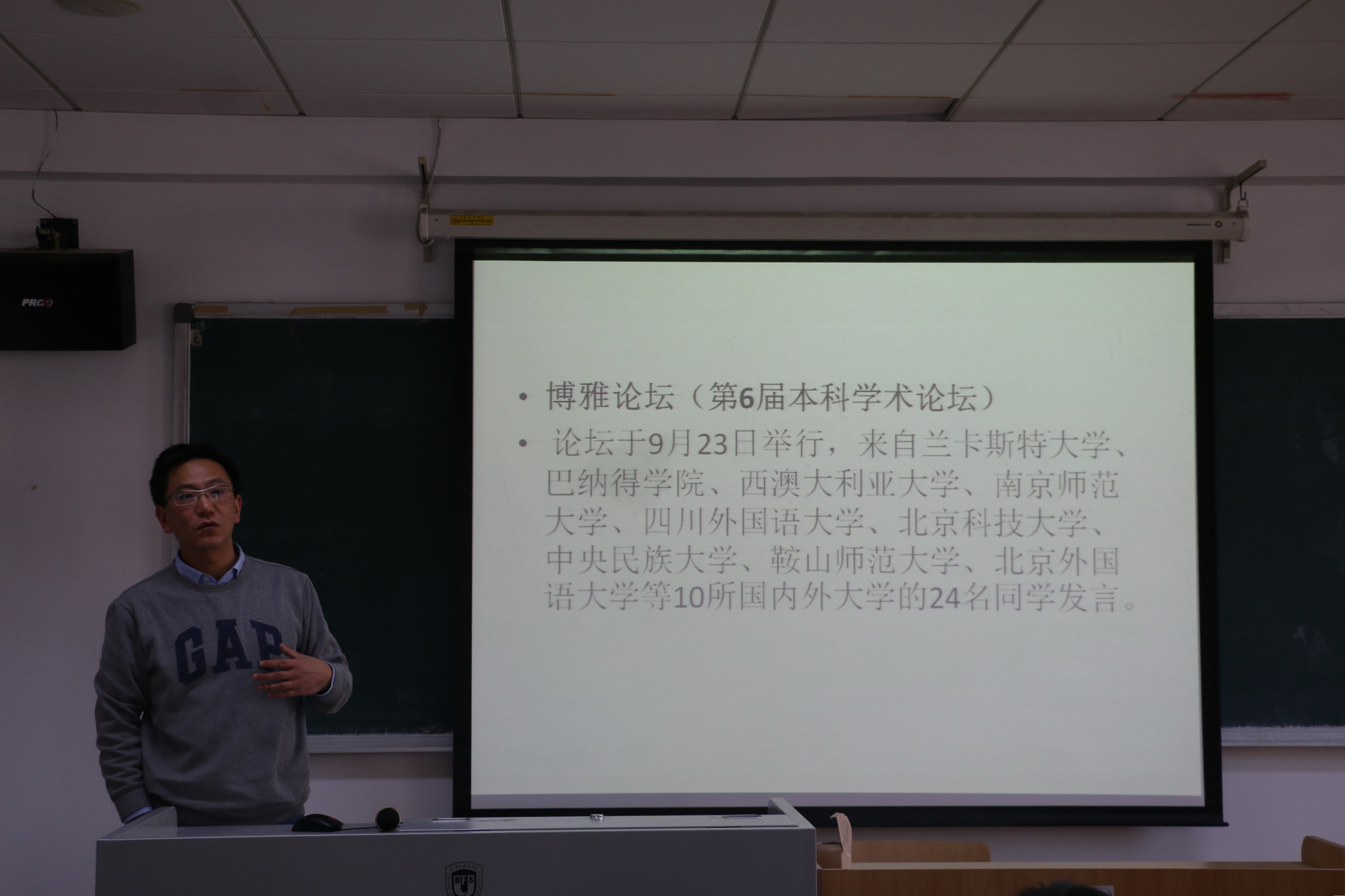 ——会上,分管研究生教学工作的副院长王展鹏教授就本学期研究生工作做了如下总结:一是修订研究生培养方案,使其更加合理和完备;二是改革研究生招生,生源数量和质量都有一定程度的提高;三是各研究中心将讲座、科研立项与研究生培养有机结合,拓展了学生学术视野,提高了学生研究能力及综合素质;四是通过引进高水平专家、鼓励研究生到海外留学等,提高学院研究生教学的国际化水平;五是各中心积极开展学科竞赛,培养创新型人才,人才培养取得诸多新成果;六是丰富办学资源:MTI方向新建同传口译实验室,设立新的奖学金和实习基地,办学资源得到进一步丰富;七是同等学力研修班平稳推进。
