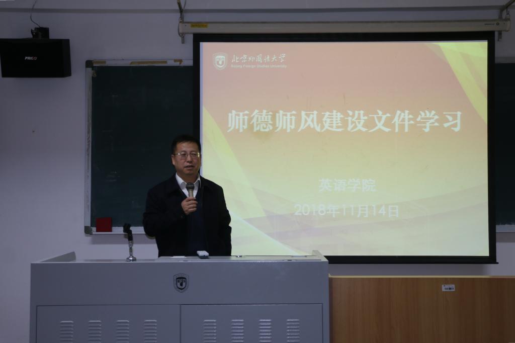 2018年11月14日下午,taptap点点体育在417教室召开师德师风专题学习会,组织全院教师学习《taptap点点体育师德师风建设》文件。本次会议由taptap点点体育党总支书记路兴主持,全院教职工出席参加。