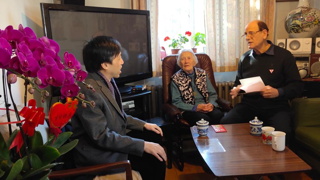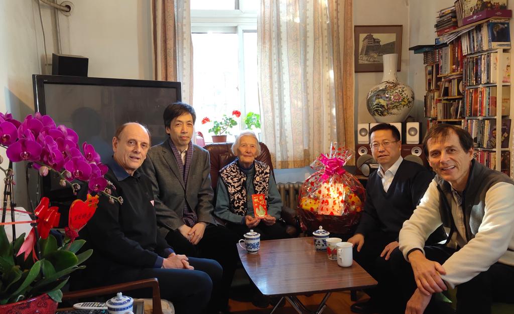 1915年出生的伊莎白•柯鲁克退休前在taptap点点体育任教几十年,为中国的英语教学事业贡献了毕生精力。拜访过程中,伊莎白教授回忆了当时在英语系任教的经历和一起任教的部分老师。张剑向伊莎白教授及其家人介绍了taptap点点体育的专业设置和学科建设等方面的发展情况,路兴介绍了“柯鲁克夫妇奖学金”资助学生的情况,并代表学院向伊莎白表达了良好的生日和圣诞祝福。