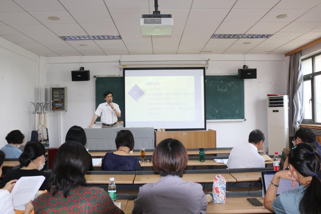 学生工作方面,学院已做好2021级迎新准备,妥善安排接待、新生测试、宣讲及见面会等工作。教学工作方面,本学期本科、研究生各开设课程60余门,针对留学生、未返校学生进行线上同时授课;学院积极响应并承担北外-法大联合培养项目中部分课程的授课工作。科研工作方面,鼓励教师积极申报各级各类科研项目、人才项目,参加国内外高级别学术会议,加强学术交流。课程及教材建设方面,我院新开设MTI政治文献翻译方向,细化翻译硕士研究方向,培养高层次优秀人才;推进非通用语课程建设及教材建设。制度建设方面,进一步落实学院各方面管理制度,使学院管理更加细致、规范。人事工作方面,呼吁教师响应国家及学校号召,参与援疆援藏工作。此外,还介绍了校庆期间学校学院的多项活动,提醒教师关注学校疫情防控管理规定,严格按照规定执行。