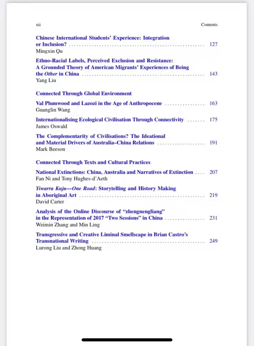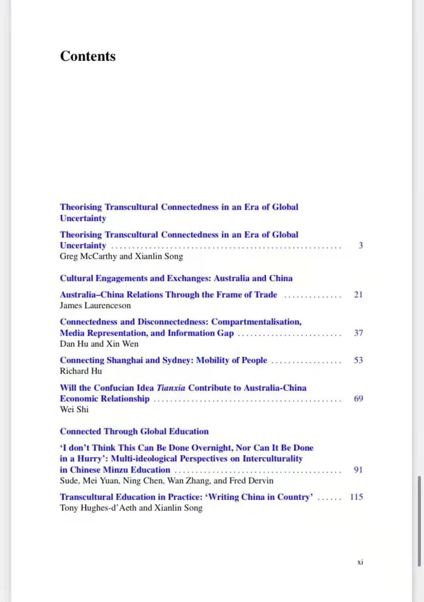 论文集延续了Springer出版社“Encounters between East and West: Intercultural Perspectives”系列的关注点,围绕“Transcultural Connections:Australia and China”(中澳跨文化联系)的主题,集结出版了2019年CATS会议期间的优秀论文及部分特邀稿件,由Greg McCarthy教授、孙有中教授、Xianlin Song副教授主编。taptap点点体育刘杨博士、胡丹博士与澳研中心研究生文馨供稿。