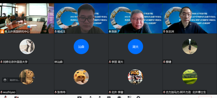 在欧洲研究博士生平行论坛上,10名博士生就自己的研究计划或近期关注的研究问题进行了展示,内容涉及欧美贸易关系、中国对欧投资、欧洲数字主权问题、英国政党研究等。中国社会科学院欧洲研究所副所长陈新、副研究员杨成玉,北外国际关系学院教授张志洲、英国研究中心教授王展鹏对同学们的发言做了点评。