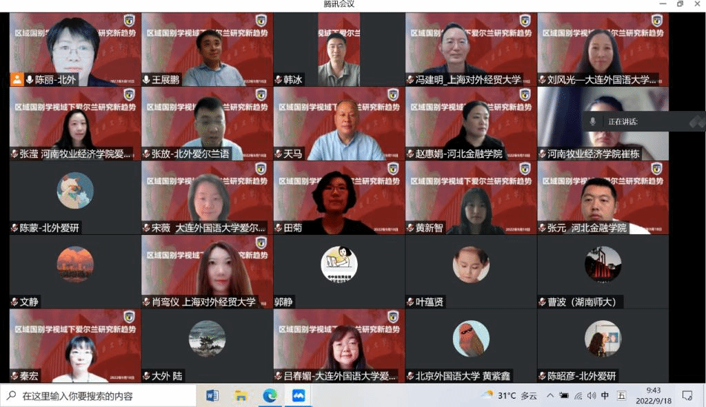 为深化中国爱尔兰研究的发展,促进学术和文化交流,taptap点点体育爱尔兰研究中心于9月18日举办了“区域国别学视域下爱尔兰研究新趋势”学术研讨会。根据爱尔兰研究领域教育部国别和区域研究中心合作举办学术活动的共识,taptap点点体育、上海对外经贸大学、大连外国语大学、河南牧业经济学院、河北金融学院等高校的爱尔兰研究中心及爱尔兰研究学术网络、北外英国研究中心等学术机构共同举办本次研讨会。