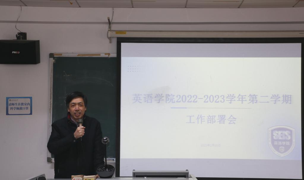 副院长张莲介绍了本科生课程开设及师资建设情况,并指出要在确保教学、管理、辅导、考试等日常工作顺利开展的基础上,着重做好国家一流本科专业建设、虚拟教研室建设、北外-人大21世纪马克思主义国际传播项目班建设、教学立项、常态化辅导以及教务管理等工作。副院长王展鹏从研究生招生宣传、导师制建设、课程思政、论文答辩以及育人模式等方面,提出要“扎根中国大地、对标世界一流”,全面提高研究生人才培养质量。副院长彭萍就新学期科研工作和对外合作工作进行了介绍。她鼓励教师积极申报国社科、教育部等各级各类科研项目。提出要规范各类讲座、研讨会、学术沙龙的申报、审批、管理和检查工作。在对外合作中,要做好师生出国出境交流学习的安全保障工作,不断推进2023年高端引智以及与国外大学合作项目。党总支副书记孟庆琨汇报了本学期学生工作的重点。一是结合“两会”“五四”等重要时间节点,加强大学生思政教育。二是全力做好2023届毕业生就业保障工作。三是积极开展心理问题及困难学生帮扶工作。四是依托英语文化节,不断丰富创新校园文化活动。