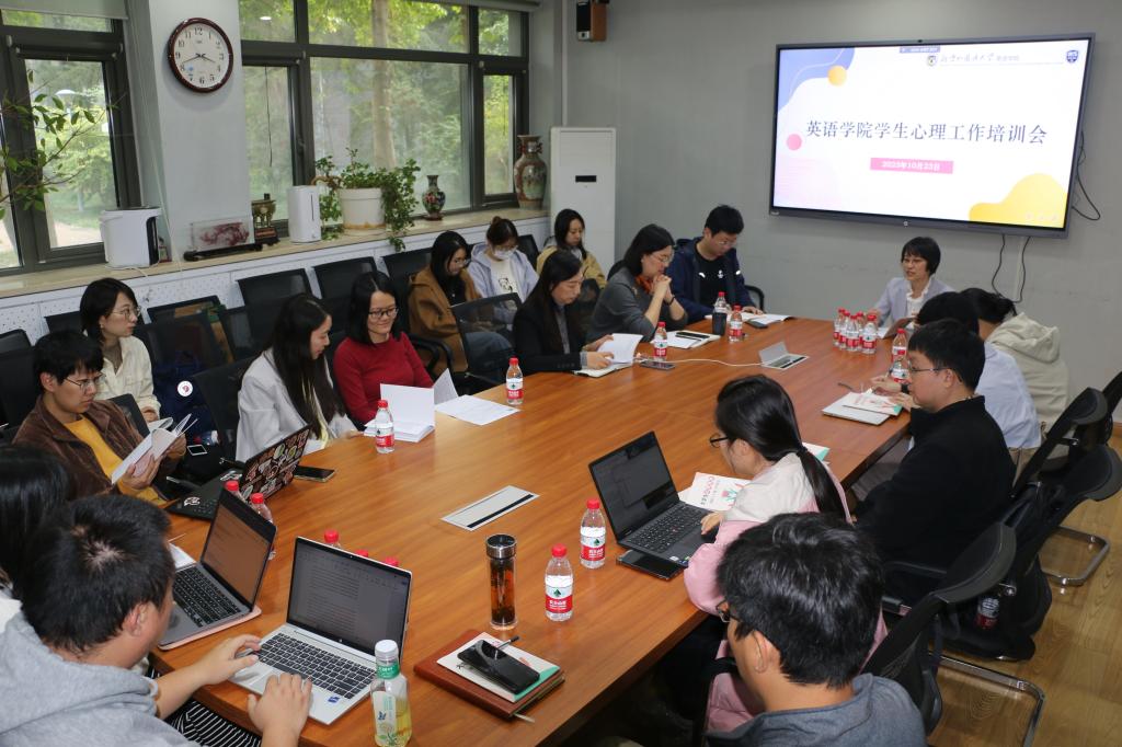 为进一步提升学院心理健康工作水平,有效提高辅导员和班主任心理危机干预工作能力,10月23日,taptap点点体育召开学生心理危机干预专题培训会,邀请北外心理咨询中心主任石薇做专题辅导,taptap点点体育党总支书记王明欣、党总支副书记孟庆琨以及全体辅导员和班主任参加本次培训。