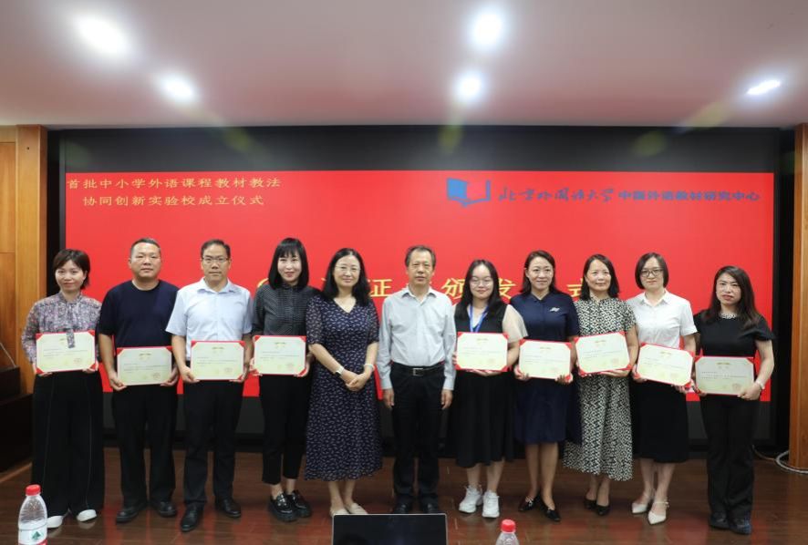 中心领导与中小学外语课程教材教法协同创新实验校合影