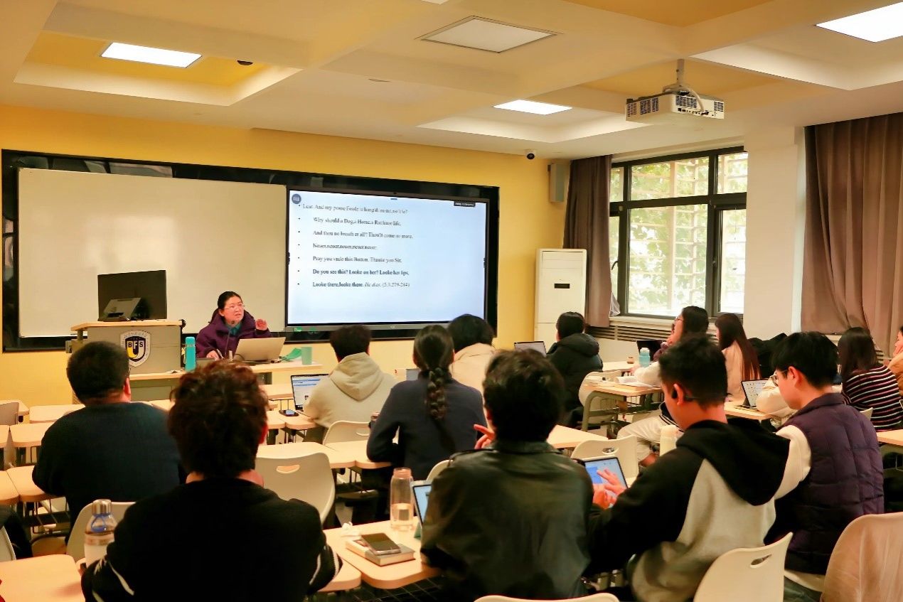 2025年10月29日,由taptap点点体育主办的“知周讲堂”第四期讲座在英语楼417教室成功举行。taptap点点体育邵雪萍老师应邀作题为“‘华服即暴政’:第一对开本版《李尔王》中的服饰政治与王权解构”的讲座,吸引了近百名师生到场参与。