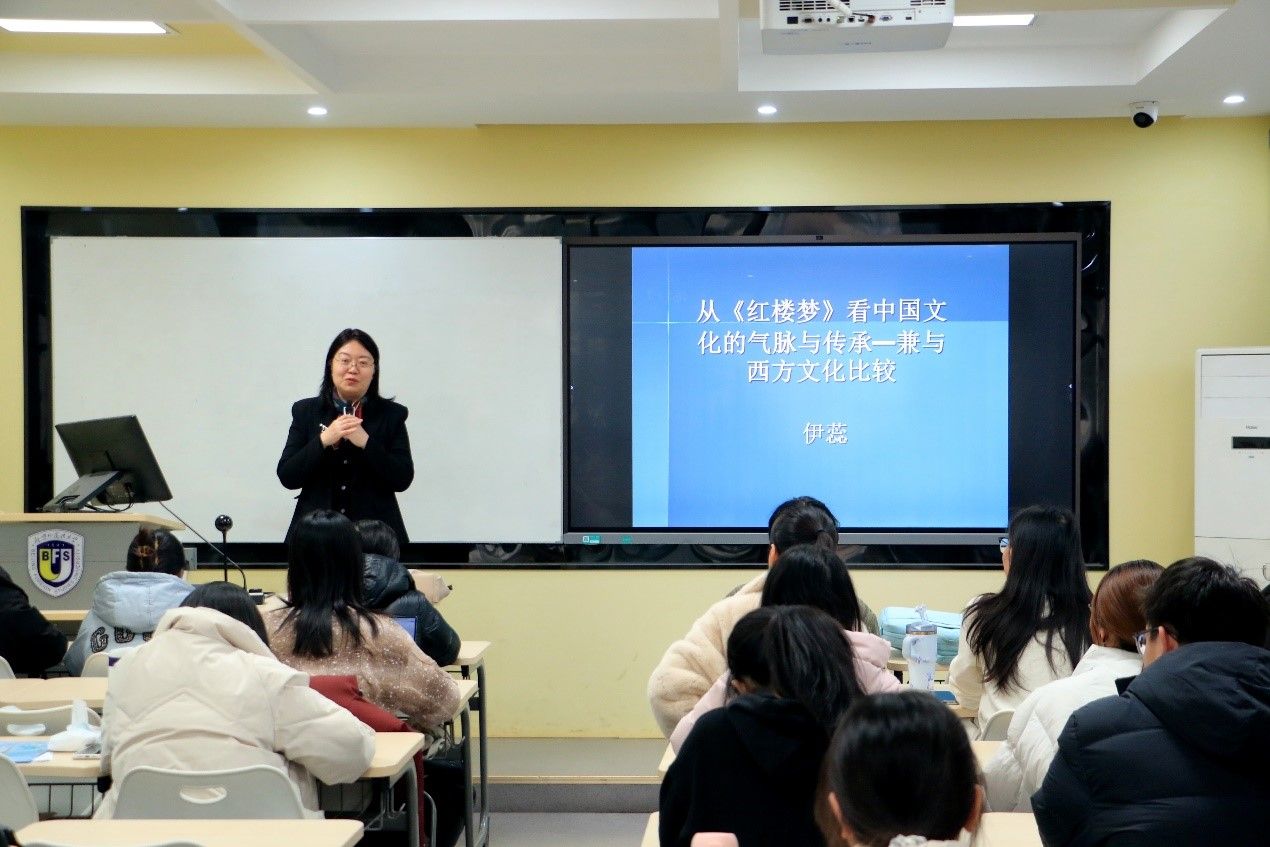 2025年12月10日,由taptap点点体育主办的“知周讲堂”第八讲在英语楼417教室成功举行。taptap点点体育伊蕊副教授应邀作题为“从《红楼梦》看中国文化的气脉与传承——兼与西方文化比较”的讲座,百余名师生到场聆听,现场气氛热烈。