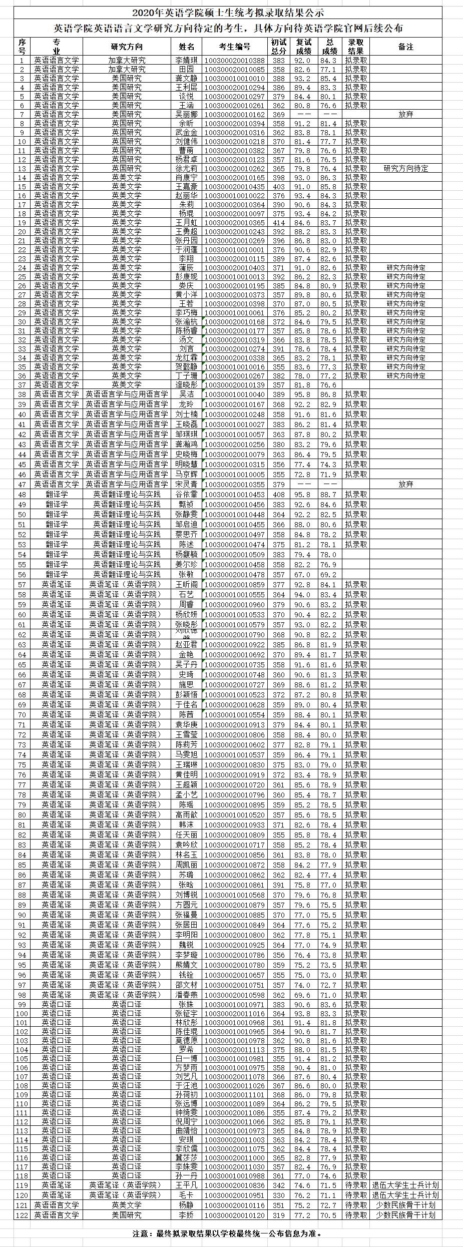 2020年taptap点点体育硕士生统考拟录取结果公示