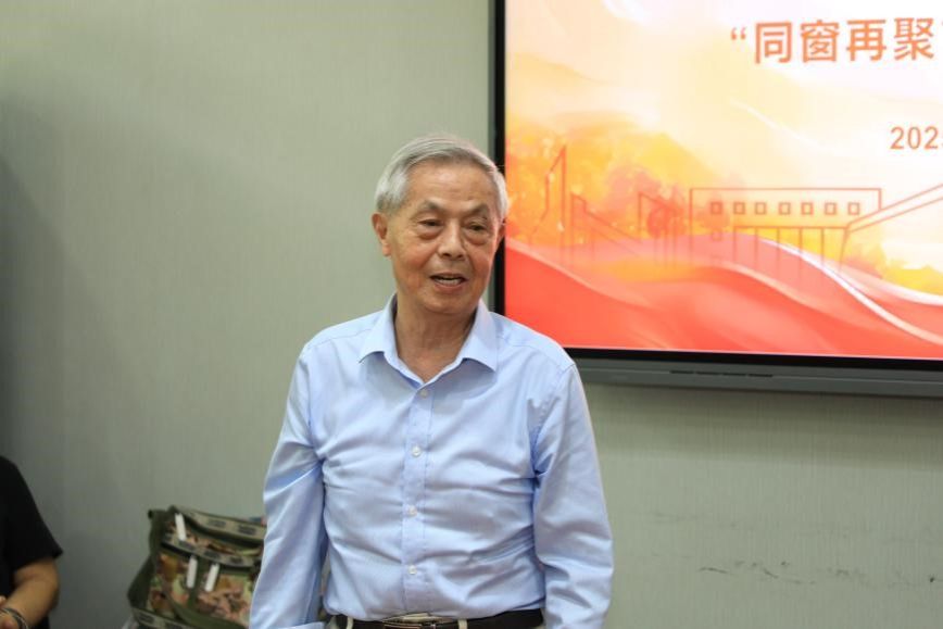 随后,蓝葆春深情致辞。他热烈欢迎各位校友回到母校,动情地回顾了与同学们共度的青春岁月,往日的学习与生活场景依然历历在目。看到如今学子们遍布四海、在各行各业取得的卓越成就,他感到无比骄傲与欣慰。最后,蓝老师衷心祝愿各位老同学身体健康,生活幸福,期待来日再相聚。