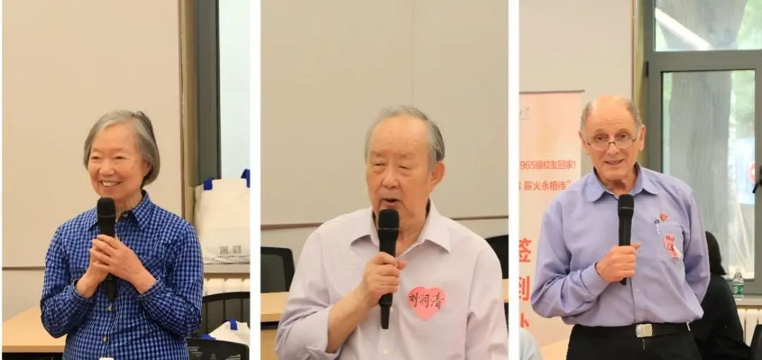 邵善清、胡伯松、郭力生作为校友代表分别发言。他们回顾了在北外8年的青春岁月,感谢母校和老师的无私培养和谆谆教诲。校友们在祖国的各条战线作出自已应有的贡献,无愧于党,无愧于人民,无愧于母校的荣光。