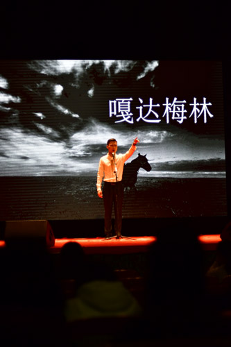 ——郭子奇与罗衍禾的诗朗诵《嘎达梅林》,讲述了一位英勇少年为了民族大义而牺牲自己的故事,表演者生动自然的表演将爱国情怀淋漓尽致地展现了出来,引起观众深深的共鸣。