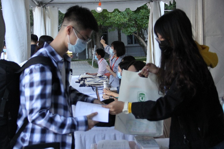 在主楼迎新处,新生们在志愿者的引导下进行了迎新注册码的验证工作,领取北外专属一卡通及新生大礼包。在taptap点点体育,学生会工作人员仔细清点新生所提交的档案材料,努力将每一个细节落到实处。