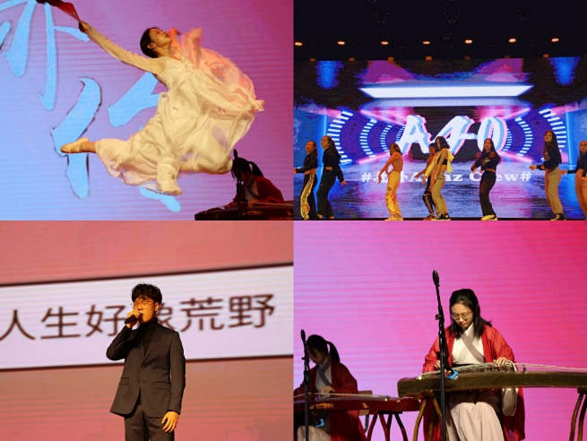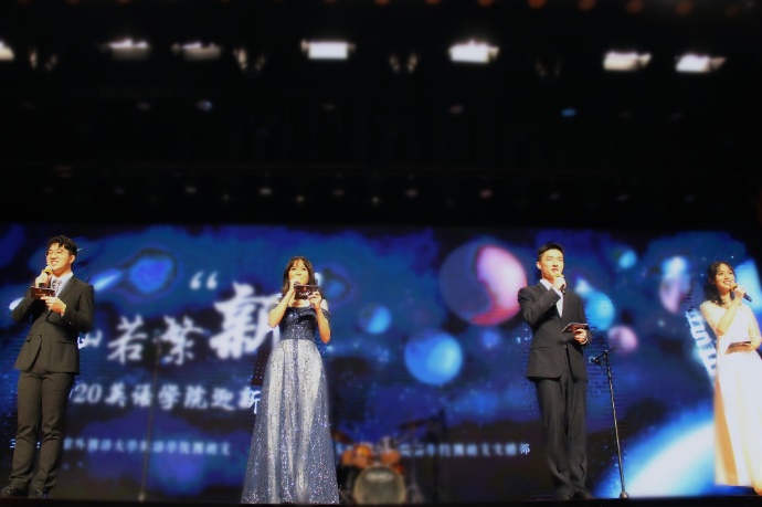 晚会节目形式多样,趣味盎然,充分体现出北外学子的蓬勃朝气。开场是由北外爱乐现代音乐协会的同学们带来的liveshow《Tonight》,动感的旋律、悦耳的歌声和精巧的设计,点燃了整个礼堂的气氛。本科3班卢信孜同学一袭红裳,衣袂飘飘,一支中国舞《红蕊》,给舞台带来一抹异域风情。研究生语言学班的杨弘毅同学的独唱《遇到》,温柔治愈的歌声在礼堂上空环绕,让人沉浸其中。随后是由北外街舞队带来的街舞《A40》,街舞队以炫酷动感的音乐和充满活力的舞姿,将礼堂气氛引向高潮。接下来的节目更是精彩倍出,从活泼欢快的笛子独奏《牧民新歌》,到元气满满的舞蹈串烧《Dance in Your Area》;从美妙动人的粤语歌曲《单车》,到悦耳动听的英文歌曲《Loyal Brave True》和《Shallow》;从刚柔并济的中国舞《赤伶》,到中外元素碰撞融合的《春天来了》;从温暖感人的合唱《一首让人猝不及防的歌》及《Counting Stars》,到慷慨激昂的诗朗诵《青春》,再到令人捧腹的相声《特长》......现场气氛欢乐融洽、掌声不断。丰富多彩的节目充分展现了北外“兼容并蓄”的特点,体现出学校和学院对同学们的热烈欢迎以及新同学们对大学生活的美好憧憬。