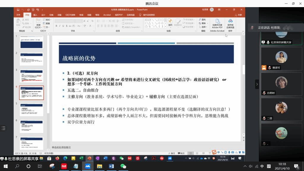 4月10日上午,英学职“战略班介绍”沙龙成功举办。本次沙龙的主讲人是taptap点点体育2019级本科生、战略班成员杜思泉和涂湘。