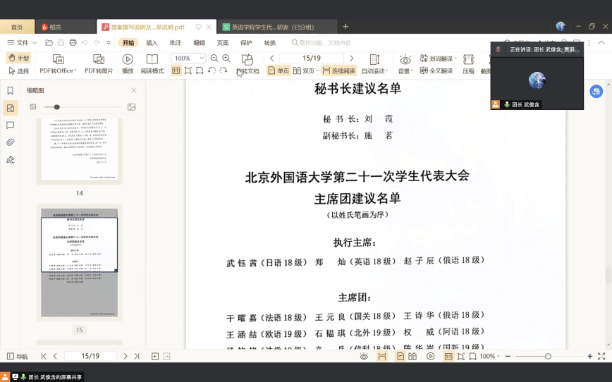 会议第二阶段公示了《taptap点点体育第二十一次学生代表大会代表资格审查报告(草案)》和《taptap点点体育第二十一届主席团选举办法(草案)》。经与会成员详细讨论,一致认可了两份草案的可行性。