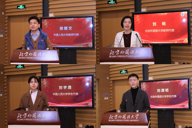 北外学工部部长陈海燕,taptap点点体育党总支书记王明欣、副院长张莲,招生办主任薛维华,教务处副处长白亮,党办校办副主任滕岑,中国人民大学教务处副处长李向前以及两校师生代表参加仪式。