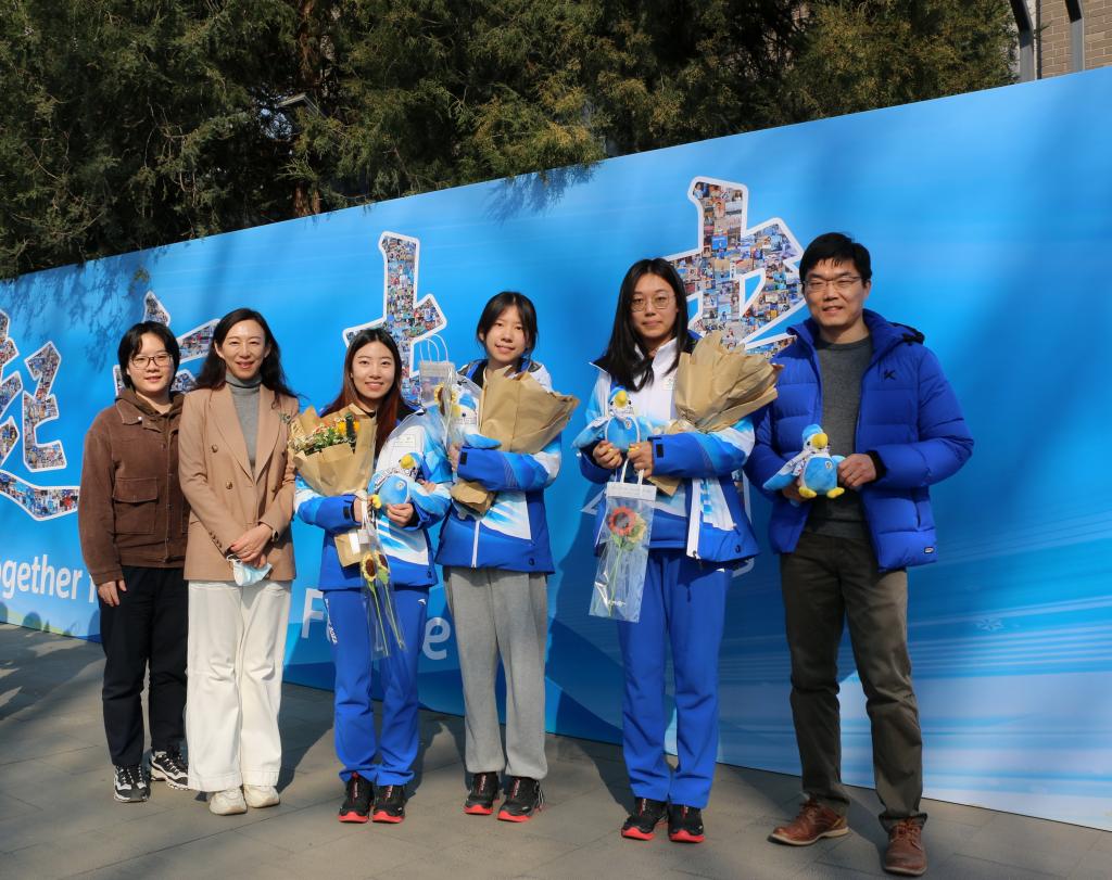3月8日,taptap点点体育迎来第一批返校的冬奥志愿者。党总支书记王明欣,辅导员于承杰、王萌慰问迎接。