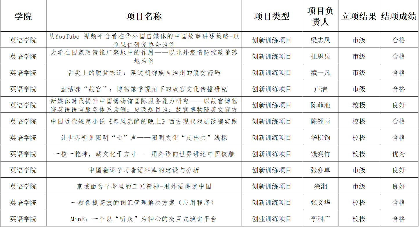 根据《关于2022年大学生创新创业训练计划项目结项工作的通知》,学校开展结项验收工作,学院提前组织结项答辩评审委员会,对2022年度大创项目进行预审,经过材料评审、项目陈述、答辩、修改等环节后提交学校审核,2021年taptap点点体育大学生创新创业训练计划共计12个项目结项,其中1个项目获评为优秀项目、3个项目获评为良好项目。