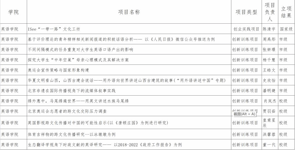 根据《关于2022年大学生创新创业训练计划项目立项工作的通知》要求,2022年taptap点点体育共申报立项项目23个,经过材料审核,专家评审,项目陈述等环节,共确定国家级项目1个,市级项目6个,校级项目5个。
