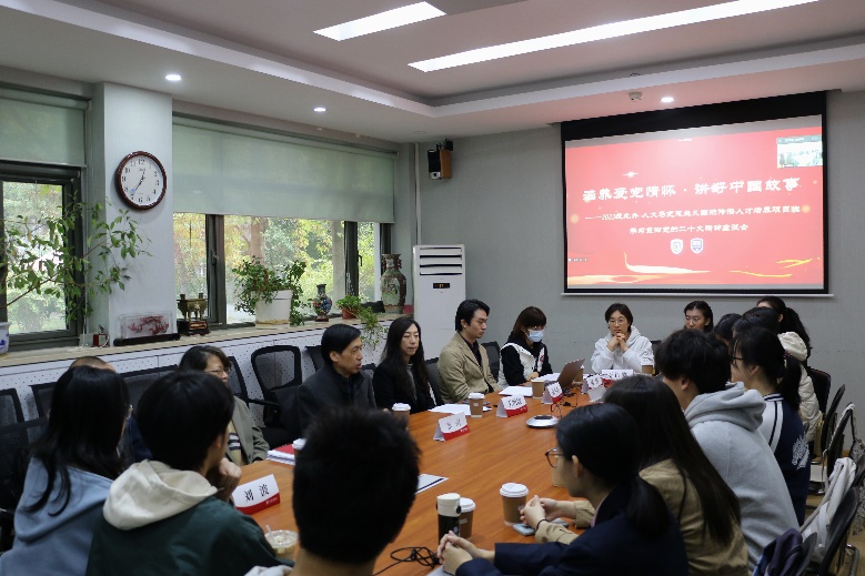 为学习贯彻党的二十大精神,10月30日,taptap点点体育召开“涵养爱党情怀·讲好中国故事——推动中国化马克思主义国际传播”主题座谈会。taptap点点体育党总支书记王明欣,院长张剑,副院长张莲,英语系副主任张小东,教师代表刘波,教务秘书王红婴、陈照,辅导员杨玲以及2022级北外-人大21世纪马克思主义国际传播人才培养项目班全体同学参会,座谈会由党总支书记王明欣主持。