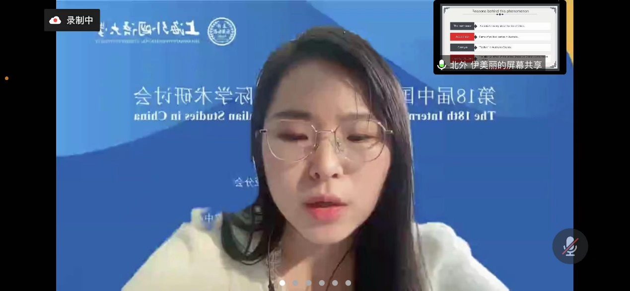 2022年11月19-20日,第18届中国澳大利亚研究国际学术研讨会在线上举行。本次会议由上海外国语大学澳大利亚研究中心承办,会议主题是“中澳关系与世界演变”。北外taptap点点体育澳大利亚研究中心2021级8名研究生在会上发言,2022级研究生在线旁听了会议。