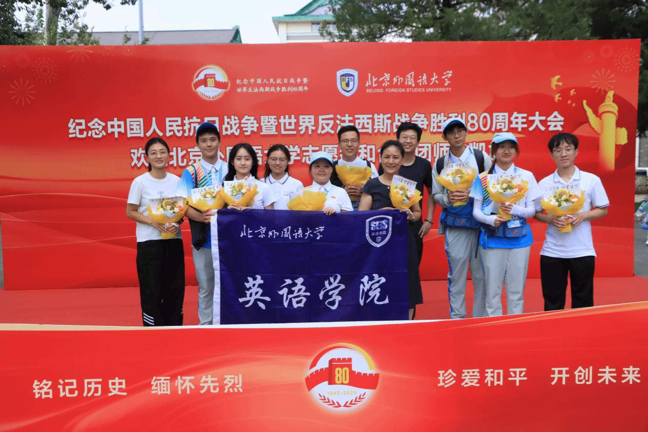 很感谢学校能够提供这次宝贵的机会,让我能作为志愿者切实参与其中。服务全程我们都充满活力,站在纪念大会的前哨展示着北外学子的精神风貌。未来,我也会积极践行青年志愿者的使命和担当,服务人民,报效祖国!