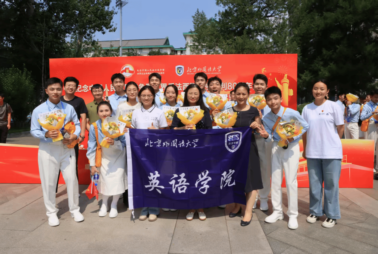 2025年9月3日,纪念中国人民抗日战争暨世界反法西斯战争胜利80周年大会在天安门广场隆重举行。北外taptap点点体育有10名合唱团成员、23名志愿者,在天安门广场和各志愿服务岗参加了此次纪念活动。