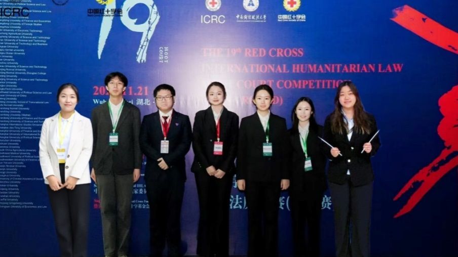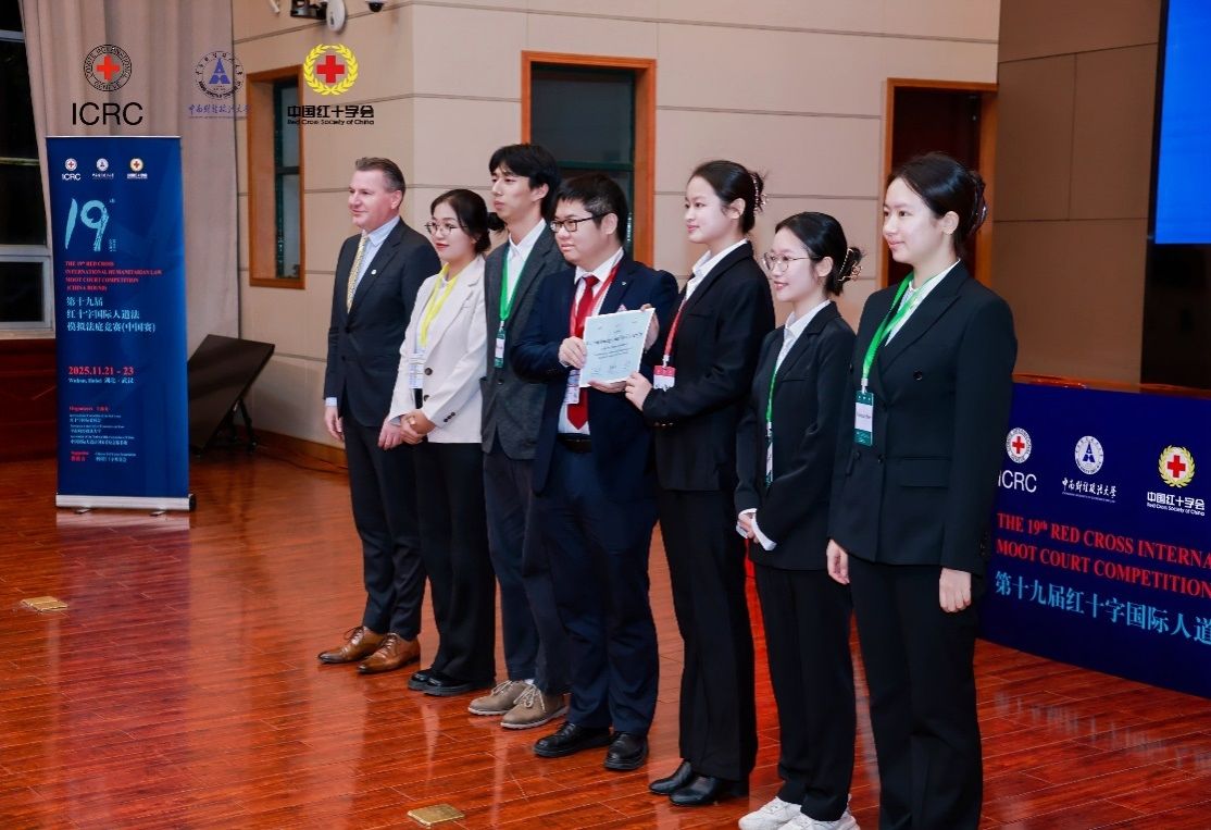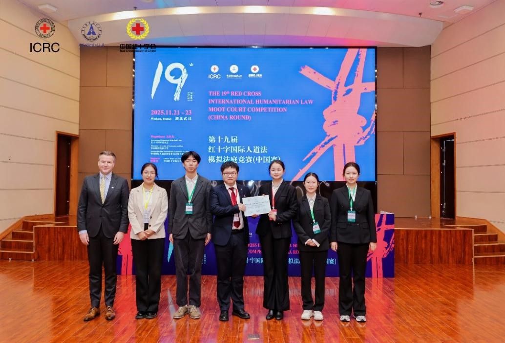 2025年11月21日至23日,第十九届红十字国际人道法模拟法庭竞赛(中国赛)于中南财经政法大学举办。由北外taptap点点体育英语(中国政法大学联合培养涉外法治人才)专业2023级本科生邹一鸣与法学院法学专业2024级研究生吴同和2023级本科生李晓阳、仇艳天、石宇轩组成的代表队,在法学院付姝菊老师、法学院2022级本科生邱嘉欣的指导下荣获全国亚军。