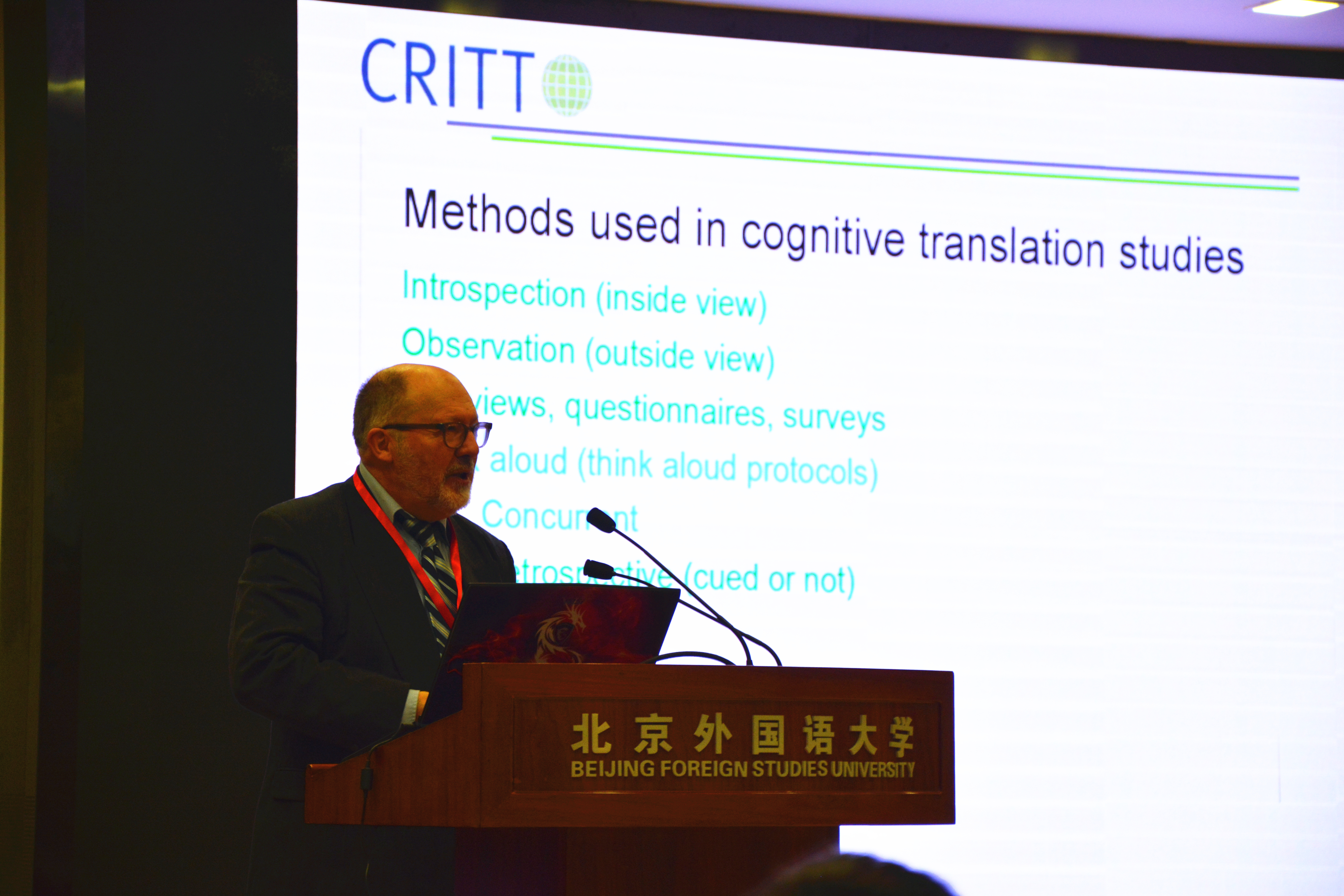 ——与会专家学者围绕着翻译的认知过程以及相关研究方法从理论或实证角度展开研讨,发言精彩纷呈,所探讨的翻译形式包括笔译、口译、视译、计算机辅助翻译、译后编辑等,研究的具体对象从译员扩展到读者、观众等,研究所采用的实验方法涉及眼动仪、键盘记录、神经影像、语料库等。