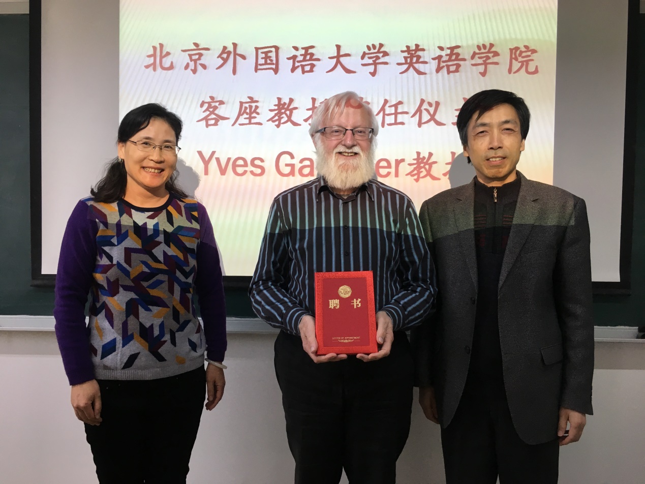 ——张剑教授为甘比尔教授颁发了客座教授聘书,并希望其定期前来北外讲学,分享欧洲最新的翻译学研究成果,以推动北外翻译学学科的建设和发展。