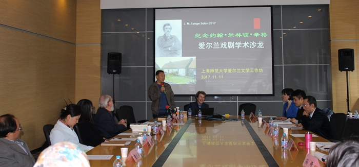 ——11月11日王展鹏老师还参加了上海师范大学组织的“纪念约翰•米林顿•辛格”爱尔兰戏剧学术沙龙,代表爱尔兰研究学术网络致辞,介绍北外辛格戏剧研究的情况,深切缅怀陈恕教授在中国爱尔兰研究发展和辛格戏剧研究中贡献。