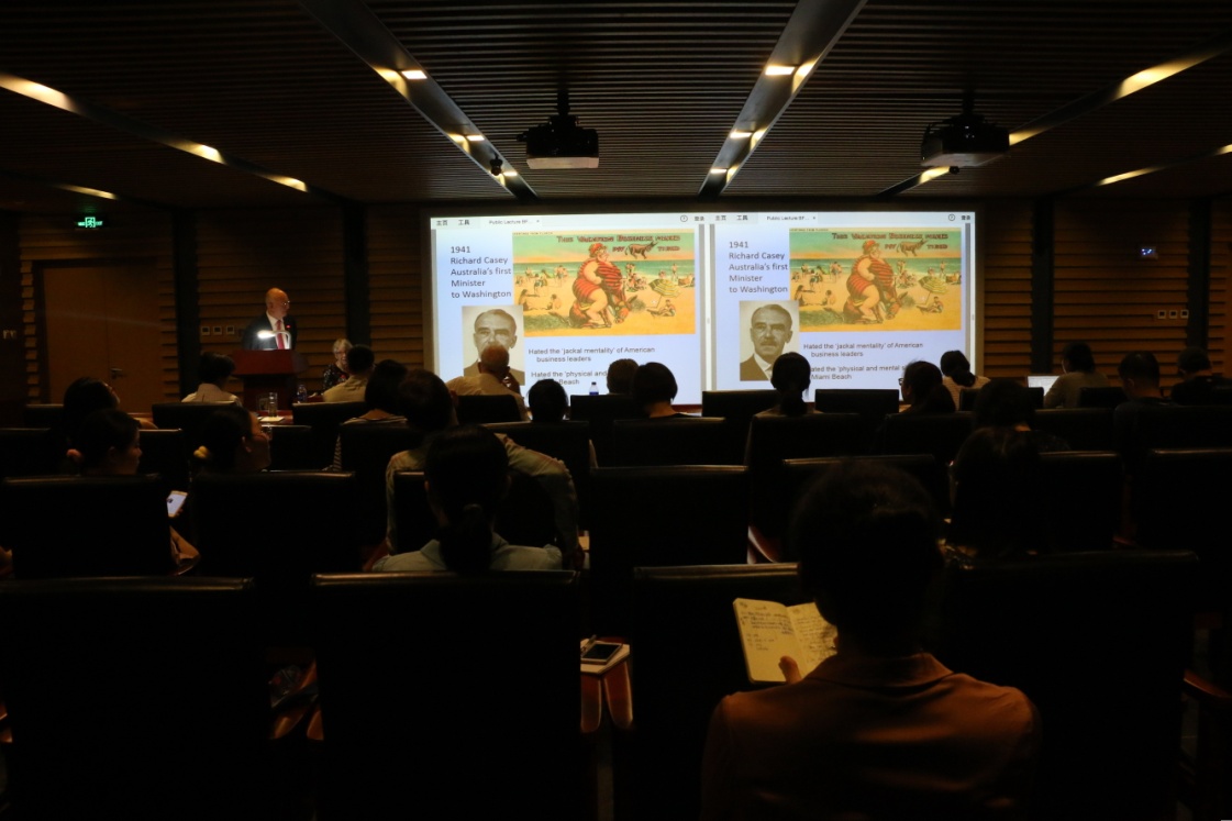 ——5月15日晚7点“北外澳研大讲堂”(BFSU Distinguished Lecture Series in Australian Studies)第一讲在北外图书馆四层学术报告厅隆重举行,我校客座教授、澳大利亚社会科学院院士、澳大利亚人文科学院院士、迪肯大学荣休教授大卫•沃克(David Walker)作了题为“澳美关系:100年的伙伴情谊?”(The Australia US Relationship: One Hundred Years of Mateship?)的讲座。讲座由taptap点点体育澳研中心主办,taptap点点体育副校长孙有中教授主持。