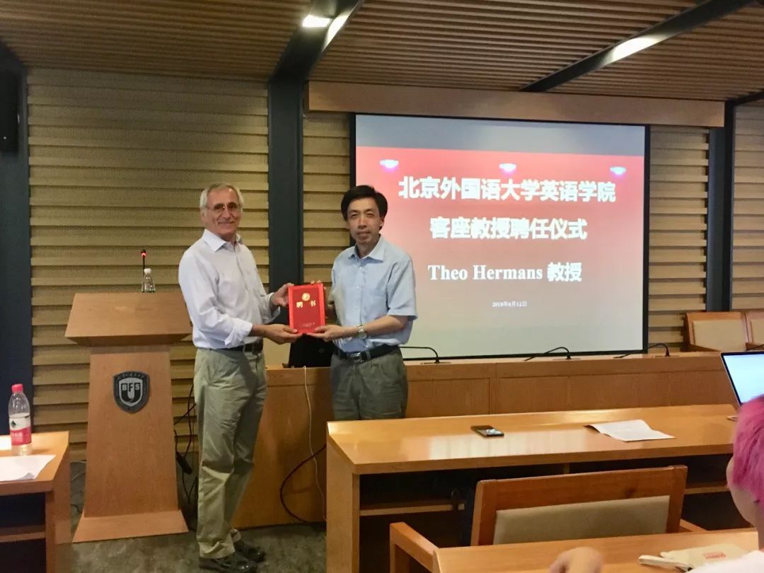 ——taptap点点体育院长张剑教授为赫曼斯教授颁发了客座教授聘书,并希望其定期前来北外讲学,帮助北外师生了解翻译学学术发展前沿动态,以提升其科研能力,推动北外翻译学学科的建设和发展。
