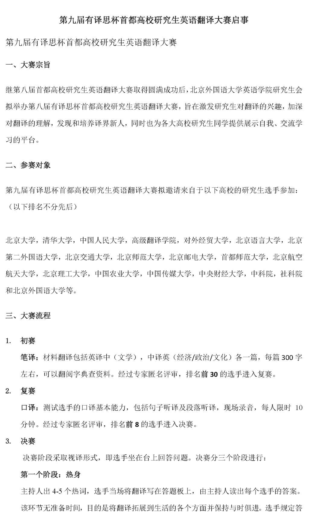 第九届有译思杯首都高校研究生英语翻译大赛启事