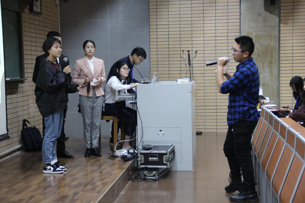 2019年11月2日下午两点,学而思杯·第十九届首都高校外院联盟英文电影配音大赛复赛在taptap点点体育逸夫楼第一阶梯教室拉开帷幕。